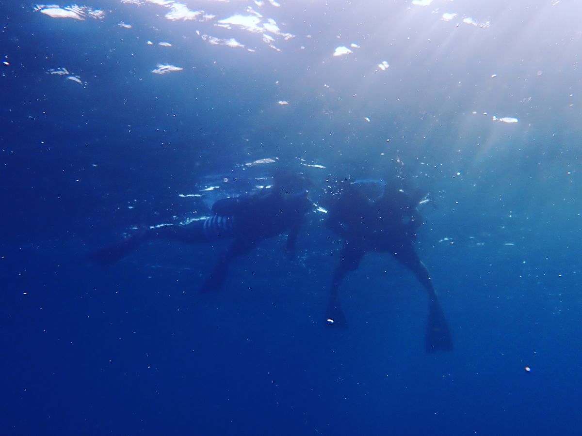 最後時間が少し余ったのでウミガメのポイントに戻って一応探してみましょうということで戻ったところ、ウミガメと遭遇!ちょっと深いところにいましたが一緒に写真におさめて頂きました。