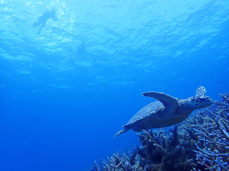 眼下にカラフルな熱帯魚や、カメまで泳いでいて天国で戯れているようでした。
