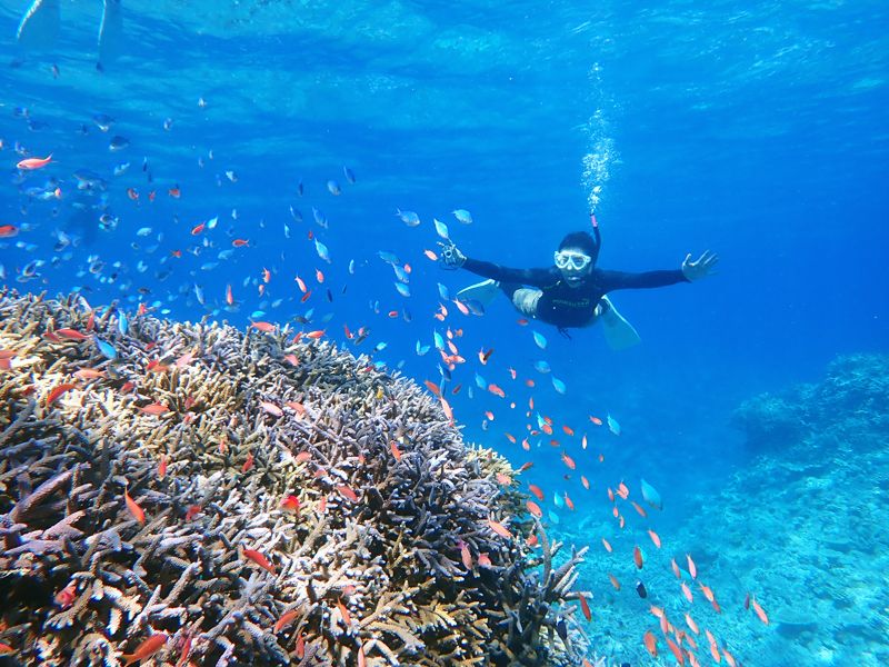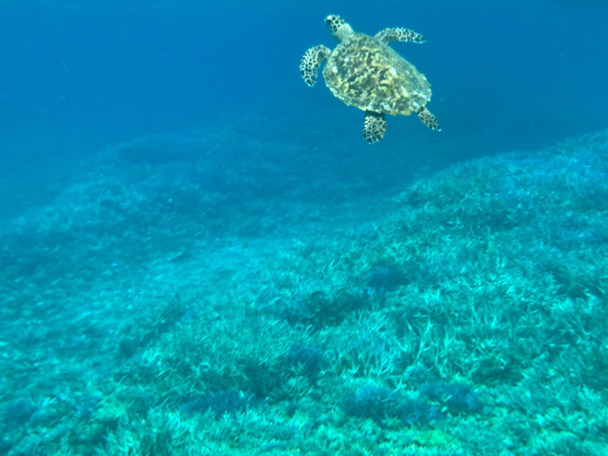 お天気の悪い日でしたが、海の中はとても綺麗で感動しました!午後の引潮の時間帯だったので、すぐ目の前に珊瑚礁が広がっており圧巻の景色でした。初めてウミガメにも遭遇でき、終始すごい〜の連続!シュノーケリング初心者でも充分楽しめました。当日は私たちの1組だけだったので、プライベート感もあり自由に過ごさせていただきました!また暑い季節に再チャレンジしたいです。一点、海を上がって港に戻るまでがとても冷えるので、バスタオルと濡れてよい防寒着は必須かなと思います!