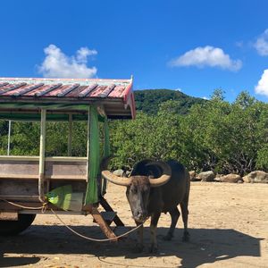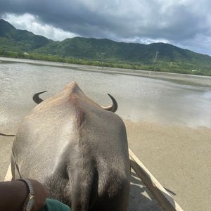 今回4人で参加させて頂きましたが、全員もう一回やりたい!というほど楽しい経験でした。最初は一人で運転する事に不安がありましたが、優しくレクチャーしてくれたり、着いていきやすいスピードで走って頂けるので安心でした。運転する前に雨が降り、適度に水たまりも出来て楽しかったです。その後はのんびり水牛に乗って、島の中を探索出来ました。なかなか普段は体験が出来ない事で思い出深いです。ただ乗っているだけではなく、水牛や島の紹介があって飽きずに20分ほど体験が出来ました。