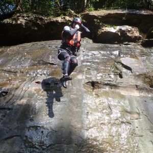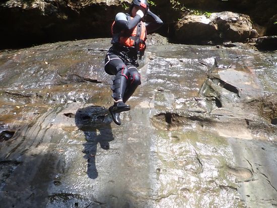 キャニオリングでは亜熱帯の森を歩き、崖をクライミングして川へ飛び込むスリルや天然のウォータースライダーを満喫しました!