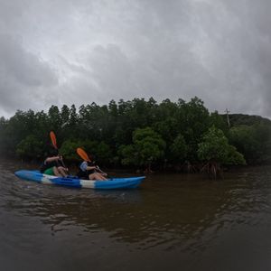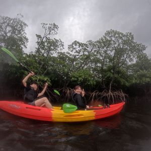 またカヌーは2人乗りでマングローブの大自然の中を渡りました。川という狭さではなく海のようでした。かなり風が強く漕ぐのが大変でしたが、常にガイドさんが目を光らせていたので安心できました。