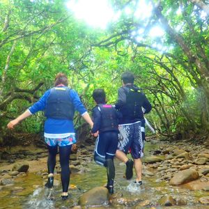 7月の休みに小学生の子供二人と妻の家族4人で人生初のキャニオニングでした!一言で「最高」。涼しい川でぷかぷか浮き、意外に自然の川ってこんなに深いんだと驚いたり、人を怖がらない魚や、自然のウナギや川を泳ぐ蛇まで出会えて最高に楽しい!ガイドのmottiさんおすすめのお昼の八重山そばはこれまでの人生で一番美味しかったかも!mottiさんは西表島のことやイリオモテヤマネコのことまで教えてくれて、楽しいだけじゃなく、なんだか離島への理解がぐっと深まった一日で、とても充実した気持ちになりました。mottiさんのご案内にはとても安心感ありました!また西表島ぜひ来たいですし、次もまたお願いすると思います!有難うございました!!