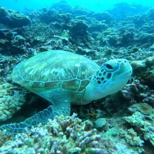 天気は曇天で、干潮の関係で午前中がシュノーケリングでした。初めてウミガメを見ることができ、ツアーガイドさんの撮ってくれた写真が素晴らしく感動しました。
