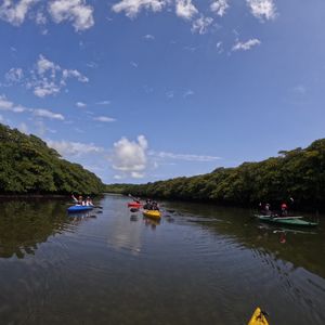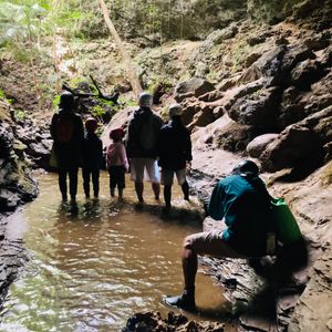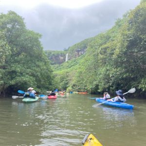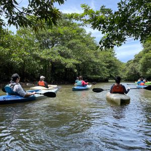 カヤックは40分✖️往復と長めなので、ゆったりとした流れの中、マングローブを眺め、オールで漕ぐ水の音を聞きながら、癒しの時間を過ごすことができました。トレッキングも、小1と小3の子どもたちを先頭にガイドさんがしっかりと見てくださり、珍しい木などの説明や、その他の質問にもしっかりと答えてくださり勉強になりました。3月末でまだ肌寒かったのですが、みんなで滝壺で泳いだことも楽しかったです。(ガイドさんも寒い中一緒に入ってくださり、驚きました!)お弁当の内容は、特大おにぎり2つ(梅と昆布)、唐揚げ、茹で卵、お漬物で、滝を見ながら(しぶきを浴びながらで寒かったですが)美味しかったです。トイレは、他社のピナイサーラツアーでも同様のようですが、携帯用トイレをガイドさんから頂き、持ち帰るという形でした。帰路は、再度トレッキングとカヤックで元来た道を戻ります。カヤックは、通常子どもは大人と一緒に乗りますが、往路の小1の息子(カヤック経験者)の技術を見て、特別に1人で乗せて頂き、黙々と漕いで楽しんでいる姿に成長を感じました。今後、得意なことはカヤックですと言わせたいと思いますw終了後に写真や動画も頂き、大満足のツアーでした。