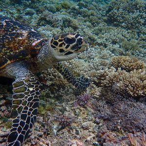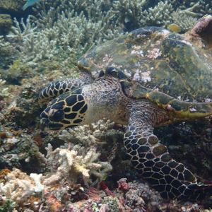 トレッキングの後のシュノーケリングでは、亀を見る事もできたし、沢山の魚と珊瑚が見れました。