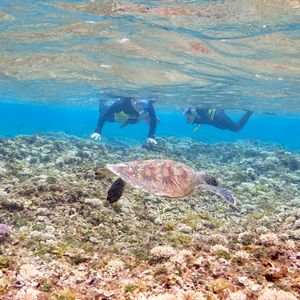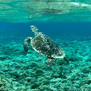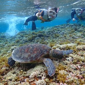 梅雨の時期で、大雨が降った雨の翌日のシュノーケリングでしたが、透明度の高い海域まで案内いいただき、真っ青で透明な海でゆっくりシュノーケリングを体験することが出来ました!海亀にも3度も遭遇し間近で見ることが出来ました。(海面に上がって息継ぎをする瞬間も見ることができました)