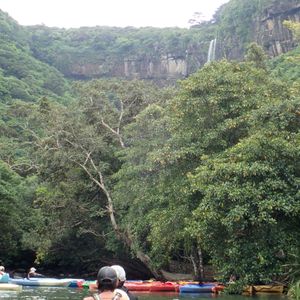 西表島のピナイサーラの滝までカヌーと滝つぼまでのトレッキングです。ホテルー石垣島から上原港の船ースタッフと合流ーアクティビティと流れはスムーズです。簡単なレクチャーとウォータープルーフバッグに貴重品とタオルをいれて出発します。滝を目指してカヌーを漕いでいくと遠くに滝が現れテンション上がります。マングローブを見ながらゆったりと進んでいきます。ジャングルはぬかるみと多少のアップダウンがありますが心配ありません。滝つぼでしばし遊べます。ガイドさんにはカヌー時や滝つぼで写真を撮っていただき、すぐに送っていただきました。滝上には行かないツァーですが、充分楽しめます。シャワーを浴びてお食事どころでいただいたお重のお弁当もとてもおいしかったです。時間的にも石垣島のホテルに16時前にはついて夕方からゆっくり過ごすこともでき、丁度よいバランスと思います。カヌーは見るより乗るとはるかに楽しいといつも思います。西表島まで足を延ばしてよかったと思います。お勧めします。