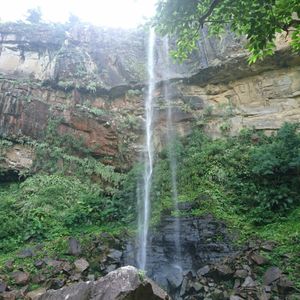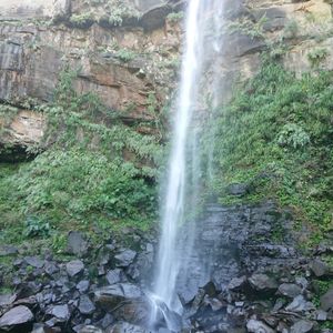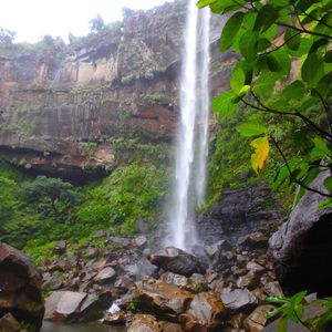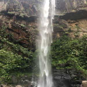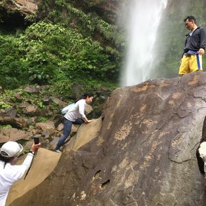 カヌーを降り、狭く急な斜面を這うように登ること20分、ピナイサーラの滝へ到着。