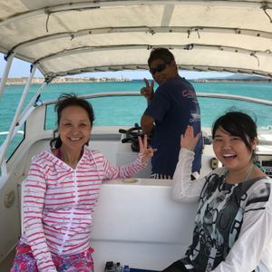 アッキーさん、みなみさん、お世話になりました。楽しかったです。家族が良いツアーを選んでくれたと喜んでくれました。口コミもよかったですが、決め手は、ボートで大きくてきれいでrichな気分になれました。全く泳げず、水が怖い私ですが、ニモに会えたし。すべて揃っていてオプションでレンタルが必要な物がなくて料金にお得感があったのとボートにシャワー、トイレや更衣室もあって最高でした。