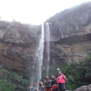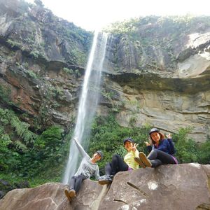 トレッキングは滑りやすい小道に気をつけながら、30分ほどで滝に到着!