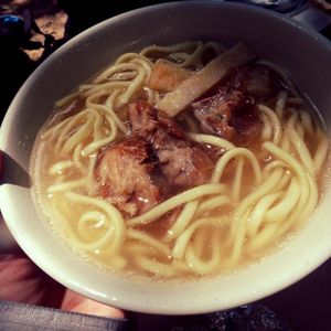 ピナイサーラの滝で沖縄そばとおにぎりです。