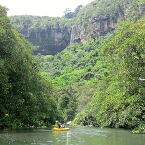 マングローブを抜けるカヤック、トレッキングの後の滝。