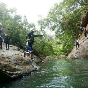 小学5年と中1男子、アクティブな体験したいとこのツアーに決定。当日は上原港に集合ということで石垣島から混雑すると聞いて早め待機で出港。現地で待っていただいてるスタッフの方と合流でき安心したのですが今年は空梅雨で洞窟の衛生環境がよくないらしく急きょお昼から代案のキャニオニングに変更。一度店の方へ移動させていただいてから貴重品のみお借りした防水バックにいれてカヌーのこぎ方レクチャーし現地へ。2人のりもあるそうだけど小学5年でも一人で大丈夫、と見守ってアドバイスいただきながら片道40分、動植物のお話聞きながらトレッキング、ピナイサーラの滝でマイナスイオンに癒されました。ガイドさんの手作りおにぎり、昼食いただき元来たルートで戻り、次はキャニオニングへ。上流から飛び込みも体験しつつ下流までの沢下りは暑い夏日に子供たちもおおはしゃぎでとてもアクティブに心地よくハードに1日満喫できました。あっという間でしたが、本当に楽しい1日過ごせました。今度もまた同じツアーで申し込みたいくらいです。また最後にたくさんの写メもいただけ嬉しかったです。アクティブに1日過ごされたい方洞窟は変更になりましたがスタッフの方も優しくおすすめです。ありがとうございました!