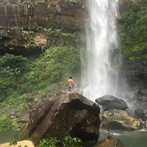 30分ほどトレッキングして、ついにピナイサーラの滝壺に到着!希望者は滝壺で泳げます。私も滝壺へダーイブ!