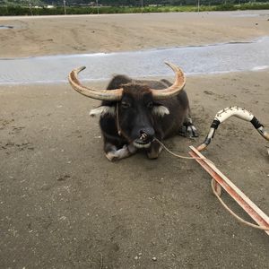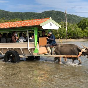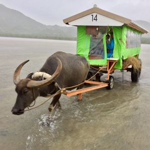 西表島から由布島へ渡る水牛車は海峡を渡り