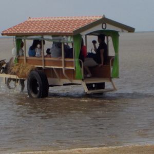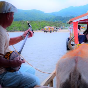 3月初旬にこのツアーに参加した。沖縄地方とはいえ、まだ肌寒い感じだった。西表島へ小型遊覧船で行き、うっそうとしたマングローブを間近に見れたのはよかった。遠浅の由布島へは可愛く力強いショウタという水牛車で渡り、乗車時間は10分程だが、牛使いのおじさんが三線を鳴らしながら沖縄民謡を歌ってくれた。自転車で一周しても一時間もかからない竹富島では、サイクリングをして星砂浜へ行ったり、牛やヤギの放し飼いを見たり楽しんだ。コンビニもない素朴な島だが、その非日常的な所がいいだろう。竹富島で一泊したので、ゆっくりできた。住民より観光客の方が多いと島の人が話していた。少々、ツアーの値段が高いなあ。