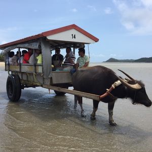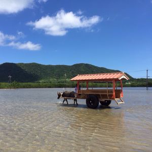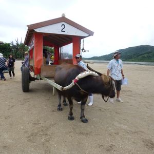 ここまでは気分のいいものではありませんでしたが、由布島への水牛車はとても癒されるいいものでした、移動中の三線に合わせる歌も盛り上がりました!さらに竹富島ではレンタル自転車でしたが、星の砂、集落などの見所は多く、何気に寄ったカキ氷屋さんは、今まで食べた事のないフアフア食感で最高でした!結局石垣島に帰ったのは最終便でした!(たぶん)レンタル自転車を選択すると、自分で船を選択できるのでいいと思います、終わってみればいい旅!でした。