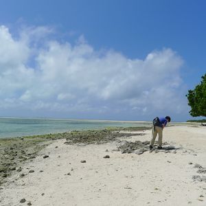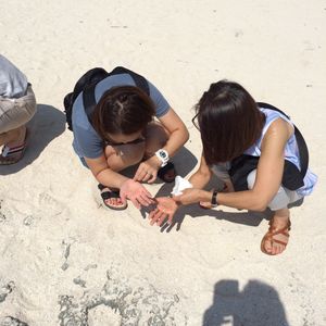 バスで星砂浜へ移動し、星の形をした砂を探しました。