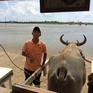 今回で2回目の参加ですが、毎度水牛車の牛さんが違うので、楽しめます。すごくいいお天気での参加でした。イケメン裕次郎君に乗せてもらい、小学生の娘は喜んでいました。