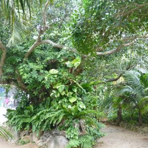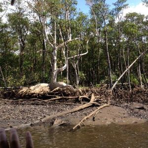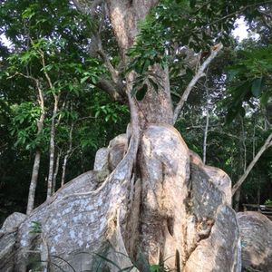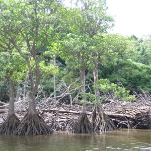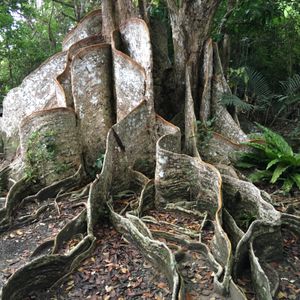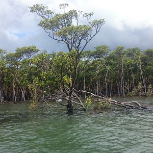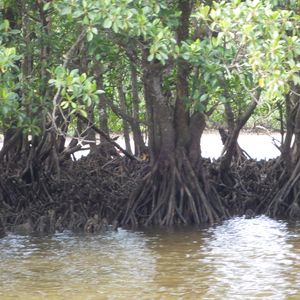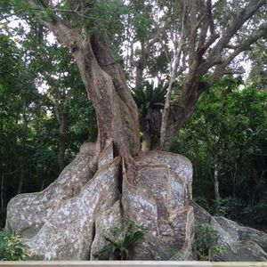初めての石垣島!この日は八重山諸島めぐりと思い参加しましたが、タイミングが悪く、旅行会社のツアープランが、この会社のツアーに組み込まれているらしく、何十人ものツアー客と同行!このため、石垣島→西表島のフェリーは超満員!見た感じ空いている席はなし!自由席なので、早めに乗船した我々は並んで着席できましたが、後半に乗船した人達は前後などにバラバラに着席!さらにメインの1つともいえるマングローブクルーズも当然満席!我々はそうなるだろうとトイレも行かずにクルーズ船へ一直線!やはりこちらも自由席のため、我々は並んで座れましたが、3分の1の方達は並んで座れず、最後の方は完全にバラバラに座っていました!せっかく旅行に来たのに、何の配慮もなく、1時間のクルーズをおとなしく座っていました!さらにタイミング悪く、本来最上流まで行き、とても大きく驚くほどの「木」が見れるらしいのですが、この時干潮が大きいと表現するのでしょうか、水がなく、川の深さが足りずクルーズ船が最上流まで行けず、途中でUターン!写真はその川沿いにある小さい物と教えていただきました。