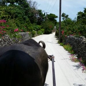 由布島ではお昼ご飯を食べた後は自由に島をまわれて、ゆっくりできました。特に水牛にのって川を渡って行くのはとても面白く、一緒に乗っていた小さい子どもたちも大喜びでした。由布島でのんびりした後は、竹富島へ。