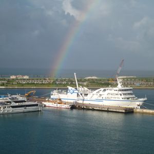 5月16日(月)、3島めぐりです。本日から梅雨に突入ということで、一日お天気がもつか心配ですが、ホテルから出て空を見上げると青空と厚い雲になんと虹がかかっていて、幸先いい感じ。なんとかいけそうな予感がします。