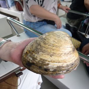 船長さんは木々や鳥たちのの説明をしながら、女性ならではの細やかさで見事なハンドルさばきです。ここで採れたという片手いっぱいの大きなしじみを見せてくれました。