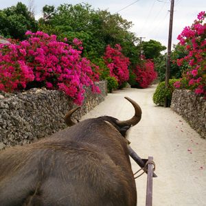 竹富島ではバス観光と水牛車を選択しましたが,水牛の「結」君が狭い道を