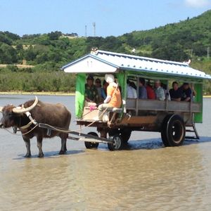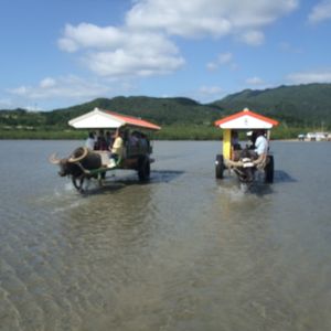 梅雨時期で天気が不安でしたが、ずっと晴れました☆小学生の子供が喜ぶだろうと3島めぐりを選んだのですが、スムーズな流れに子供達は飽きる事なく喜びました☆しいて言えばマングローブが同じ景色ばかりで後半飽きていた様ですが、水牛も星の砂拾いも大喜びでした☆お昼ご飯は少し質素に感じました。子供も同じメニューだったので、お子様ランチなど作って頂けると喜ぶと思いました。竹富島ではコンドイビーチをバスから見ただけだったので、海に入りたいとも思ったのですが、今回は次の日に幻の島も予約して海も入れたので、組み合わせとしては正解だったなと満足しております☆有難うございました。