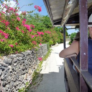 グラスボートではカラフルなサンゴと大小様々な魚がたくさん見れました。キレイなアオスズメダイや人気のカクレクマノミにも遭遇できちゃいました!本当に魚が多く、ドライバーさんの説明もわかりやすいので船酔いが心配だった30分間もあっという間に終了。そのあとは約1時間ほど、バスでの島内観光と集落の徒歩観光。