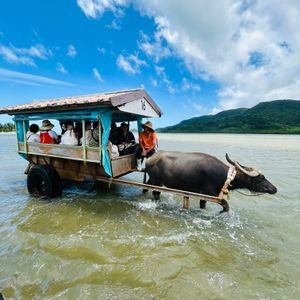 ツアーの日は梅雨明けした日でお天気はよかったです。一日中暑かったので竹富島はバス観光にして正解でした。由布島の水牛車はゆっくり歩くいちろうくんに癒されました。お昼に出されたお弁当もおいしかったです。カイジ浜にいたネコちゃん可愛かった♡ツアーに参加してよかったです。ありがとうございました。