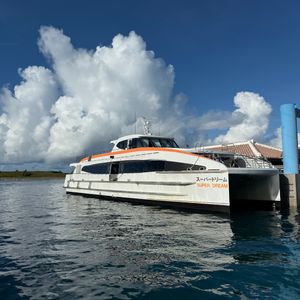 トイレ付き、冷房付きの大きい船で快適な西表島への旅。
