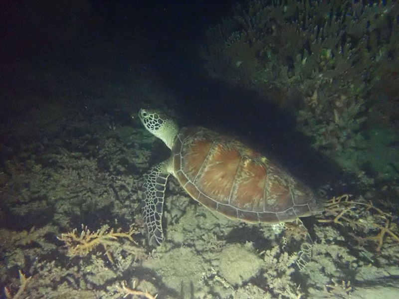 水温が低くて肌寒い1日となってしまいましたが、ナイトダイビングでは珍しいカメも見れてラッキーでした。