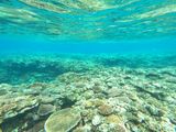 ガイドさんに付いてサンゴの海を泳ぎました。海はとても綺麗で、海中には綺麗な色の魚が泳いでいるのが見えました。
