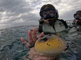 でも、ガイドのユキちゃんが途中でナマコやフグを捕まえてくれたり楽しいシュノーケルでした〜