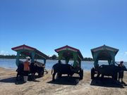 今回、西表島バギー体験、由布島観光、水牛車での竹富島観光のツアーを体験しました。 まずは西表島へ向かいバギー体験。 バギーは2回目でしたが操作は簡単なため景色を楽しみながら体験することができました。コースは元々農園だったようでグァバやバナナ、南国のお花などを見ることができました! 体験場所への道中も西表島やマングローブ、固有の動物などをご紹介いただき移動時間も楽しむことごできました! バギーの後