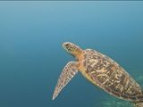 日中海底で寝ていることが多いというウミガメが悠々と泳いでおり、夢見心地で後ろを泳ぐことができ、本当に幸せでした。