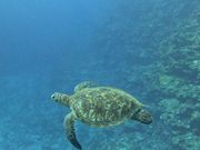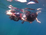 青の洞窟前で、まずはシュノーケリング。 浅瀬から珊瑚と色とりどりの魚がたくさん見られます。底が見えないほど深い所にも行きますがとっても神秘的。 「いつもウミガメが休憩しているところ」までガイドさんが案内して下さり、その辺りをみんなで探しながら泳ぎ…無事発見‼︎ラッキー‼︎ ガイドさんもノリ良く、親しみやすくて、とっても和やかな時間でした。 ポイントごとに写真も撮って下さって、 (自分のケータイは車