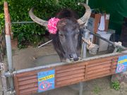 今回2回目です。 天気が荒れて水牛さんがパシャパシャと音を立てて水に浸かって由布島に向かい、かわいそうだなーと思ってましたが水牛は体温調節出来ないから水に浸かり調節するから、このような天気はかえって喜んでると聞いて安心しました。 暴風雨で傘をさしても何度もひっくり返り横風で全身濡れるほどの雨でした。 由布島で作ってる昼食にも出た油味噌を購入目的でもありましたが、1日限定数で売り切れて残念でした