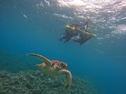 夫婦2人で参加しました。 この日は天候の関係で最初の予定の場所から安全に楽しめる場所に移動になったのですが、それでもしっかり亀さんと会えました! 凄く可愛かった! シュノーケリングは初めてだったので不安も少しありましたがとても丁寧に優しく教えてくださり、途中もこまめに声掛けしていただけたので全く不安なく楽しく過ごせました。 今回は泳ぎ始めてすぐに亀さんに会えてその後も何回も会えました!ウミガメ遭遇