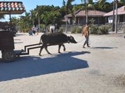 竹富島でも水牛車に乗って村を散策。車を引いてくれたカイジ君をネタにしたガイドさんのトークに皆大笑い。