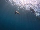 ウミガメ4匹に出会い、最短だとぶつかりそうな距離感で一緒に泳ぐことができました。