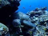 しかし自力でたどり着いた場所には、水深の深い所にウミガメのスポットがありました