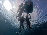 19センチの靴に合うフィンは無し!ということで、ガイドさんが引っ張ってくれる赤い浮き具をビート板のようにしてシュノーケリングスタート!!