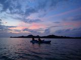 体験日は7月で日が落ちるのが遅いこともあり、集合時間は18時半でした。撮影ポイント近くまで、まずは漕ぎ始めました。途中に休憩タイムがありマンゴーを頂きました。おやつの内容は時期によって変わるようですが、ビーチでマンゴーをかぶりつく体験は初めてでかけがえのない思い出となりました。