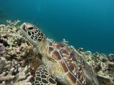スタッフの方について泳いで行くと結構早めにカメを見つけてくださいました。