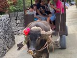 水牛から引っ張ってもらて島の家々や生活環境を見ることができました。九州とは違った生活を生で見ることができた感動しました。水牛も毎日慣れた仕事をもくもくと働いてくださって感謝しました。帰りは徒歩で武富島港まで行き、日々の雑踏から抜け出したのんびり時間を過ごすことができ元気になりました。