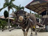 水牛との記念写真、竹富島でのゆっくり散歩はおすすめ。