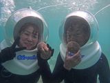 金魚鉢のようなヘルメットをかぶっての海散歩は呼吸がとても楽チンで、お魚さんもたくさん見れて、すっごく楽しかったです。